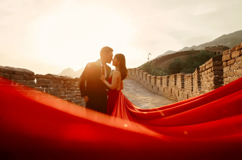 Against the backdrop of the ancient Great Wall, with blue sky and white clouds as the curtain, and green mountains and clear waters as witnesses, the newlyweds exchange rings and make a vow to stay together for a lifetime. Such a wedding, which combines historical significance with ultimate romance, is destined to become an unforgettable treasure for a lifetime.